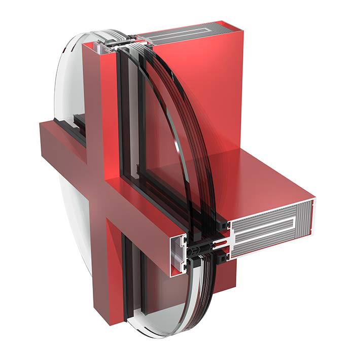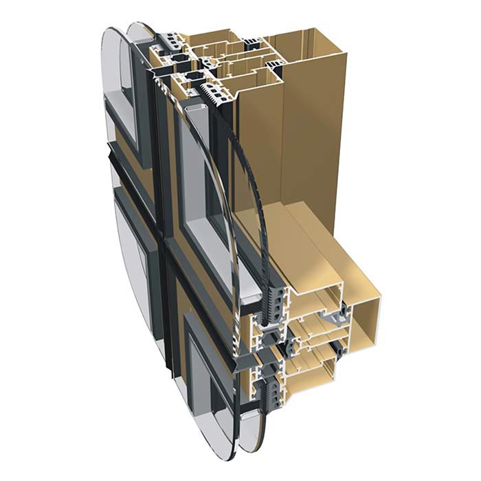 Konstrukcja ściany oparta jest na słupach pełnych, połówkach i ryglach, których szerokość wynosi 52 mm. Z zewnątrz tworzy jednolitą gładka ścianę szkła podzieloną pionowymi i poziomymi liniami o szerokości 16 mm. W systemie zastosowano kilka możliwości mocowania tafli szkła: klejenie strukturalne oraz chwytanie mechaniczne.